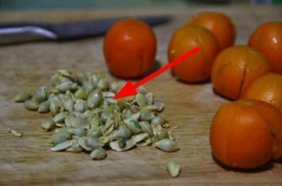 2、用小刀将洗干净了的金桔划开一个十字口,将每个金桔里面的子挑出来;