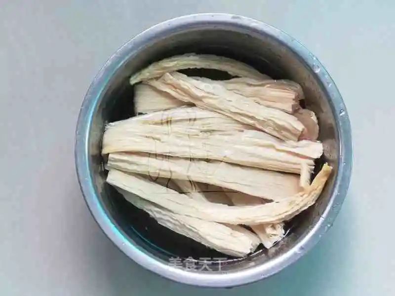 9. 加入腐竹,再加小半碗水,加盖焖煮5分钟左右。