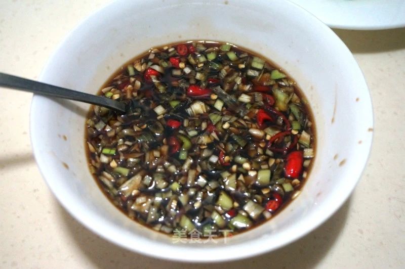 9. 与醋、生抽、盐、白糖同入碗中,混合均匀。