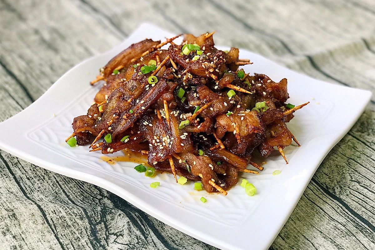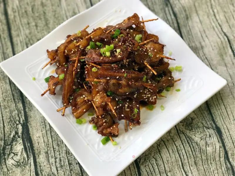 五花肉250g姜少许葱1段盐适量料酒2勺生抽2勺糖1勺辣椒粉1.5勺蚝油1勺熟白芝麻少许