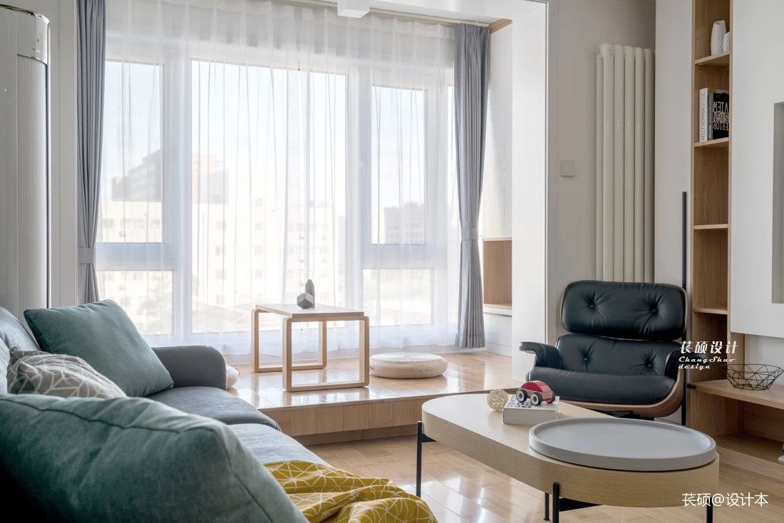 把阳台抬高:这种做法是把阳台抬高,铺上地板后,直接作为矮地台使用,随便放个小桌子,几个小坐垫抱枕就能变成一个休闲区。