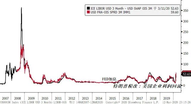 他一般关注两个指标:FRA-OIS(远期利率协议和隔夜利率互换的利差)和LIBOR-OIS(伦敦同业拆借利率和隔离利率互换的利差)。