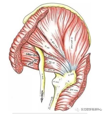 5月7日和派圆针专业诊治膝关节、股骨头坏死、面瘫、颈肩腰等疼痛及疑难杂症技术研修班--点击查看 2、在臀大肌深面向下行,依次横过闭孔内肌,上下孖肌及股方肌的后方,支配这些肌肉,并沿大收肌后面,半腱肌、半膜肌、股二头肌之间下降,在到腘窝以后,分为胫神经和腓总神经。 梨状肌